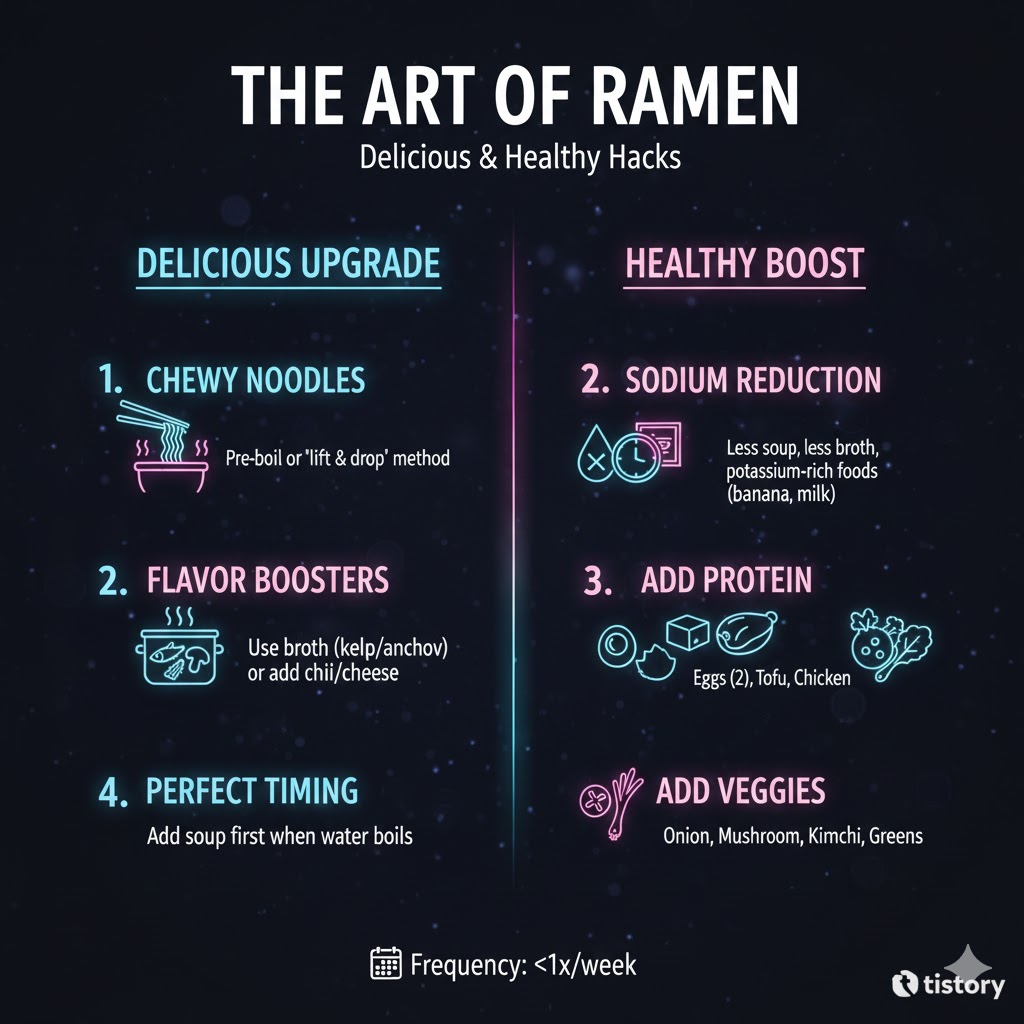 이 4가지만 지키면 라면은 충분히 맛있고 부담 적은 한 끼가 됩니다.